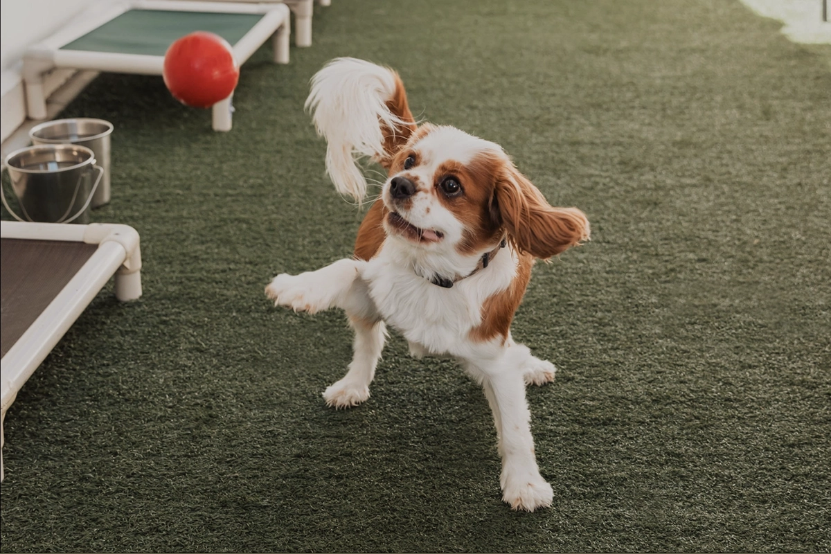 Dive into fun at our state-of-the-art saltwater pool—designed especially for your furry friend to splash, swim, and play to their heart’s content. Our professionally trained staff ensures a safe and enjoyable experience for every pup. Heated for year-round enjoyment, our L-shaped pool measures 50 by 35 feet, with a 4-foot-deep dock diving zone. Whether your dog loves to swim, leap, or simply wade and explore, this pool is the perfect aquatic playground!